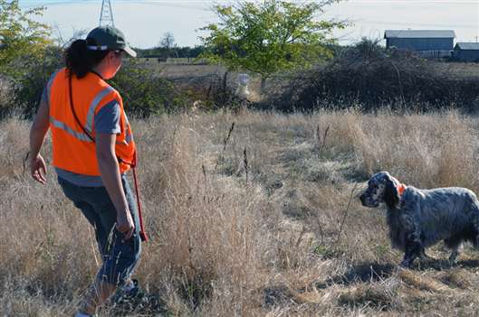 Nick on point, during one of his first training sessionsSherri kicking up a bird for Nickdrinking from a water bottle after trainingNick at his first hunt test, passing his first JH leg!Lace and Nick enjoying the hunt test in California